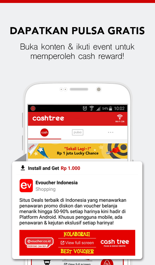 Halo sobat kumpulan's... sudah pernah dengar CASHTREE. Yap, CASHTREE, aplikasi yang memberikan reward (cash) yang dapat ditukarkan pulsa hanya dengan membaca konten, meng-install aplikasi, ataupun dengan mengikuti event-event menarik yang sedang berlangsung.